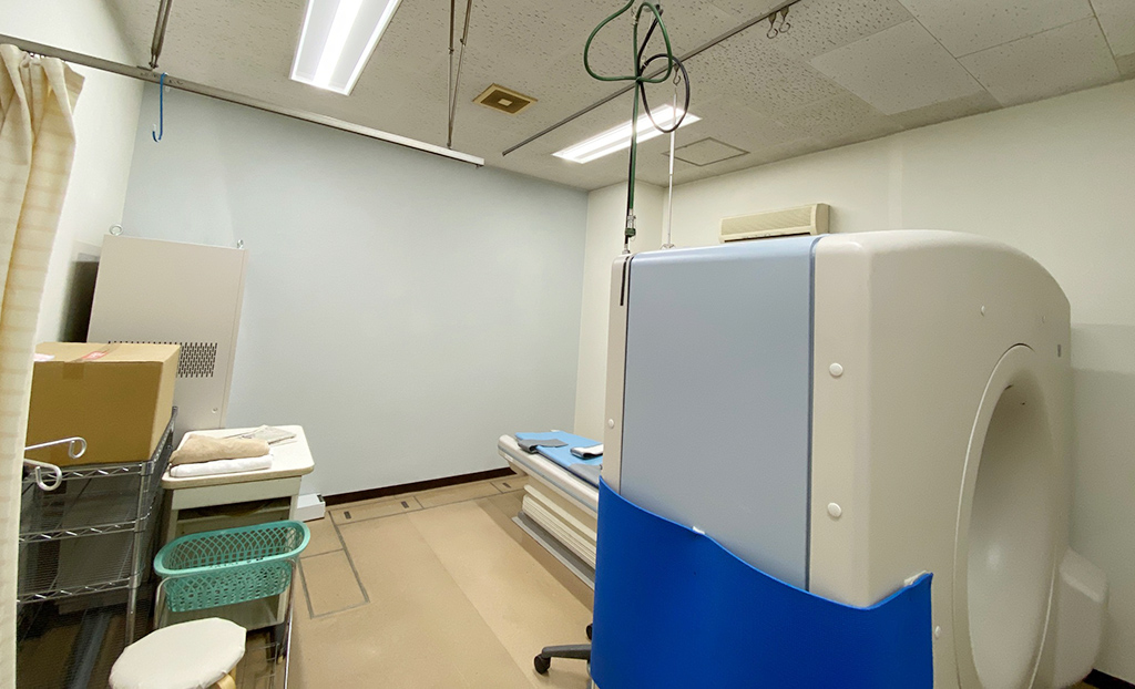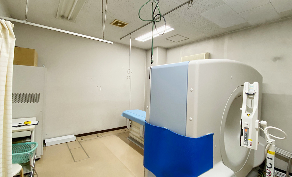 川口市の病院のCT室・X線室の壁紙を張りました。今回は既存の壁が水性塗装でしたので下地処理を行ってから壁紙を張りました。大きな医療法人なので内装制限(建築の法令)に伴い不燃材料(燃えにくい材料)を張っています。無地のアイボリー色に落ち着きのある淡いブルー色をアクセントとして張りました。『抗菌』『抗ウイルス加工』『防カビ』の壁紙です。