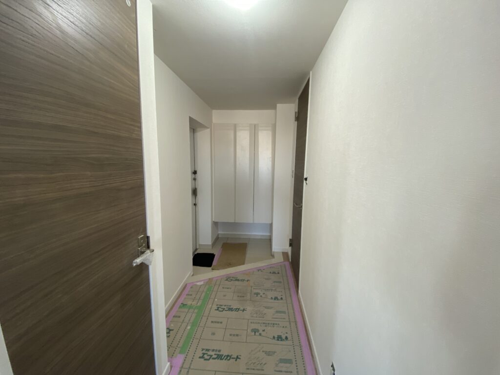 今回はお付き合いしているデベロッパー様の依頼で1LDKのクロス張とシート張(窓枠木部・玄関扉枠)の作業をしました。工事期間は4日間。明るく綺麗に仕上がりました。